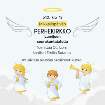 Toimittaa Olli Lohi, kanttorina Emilia Soranta. Musiikissa avustaa Suvilinnut kuoro.Jumalan sanansaattajat 400-luvulta lähtien on syyskuun 29. päivä omistettu ylienkeli Mikaelille. Taistelu, jonka hän kävi pimeyden valtoja vastaan, liittyy pääsiäiseen. Kristus on saavuttanut ratkaisevan voiton pahan valloista, mutta taistelu jatkuu edelleen maailmassa. Myöhemmin mikkelinpäivästä on tullut kaikkien enkelien päivä, jolloin tutkistellaan heidän merkitystään ja tehtäviään. Jumalan sanansaattajina enkelit suojelevat ja opastavat ihmistä ja muistuttavat häntä Jumalan tahdon mukaisesta elämästä.