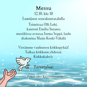 Kolehti: Kotien kristillisen kasvatuksen tukemiseen Lasten ja nuorten keskus ry:n kautta.