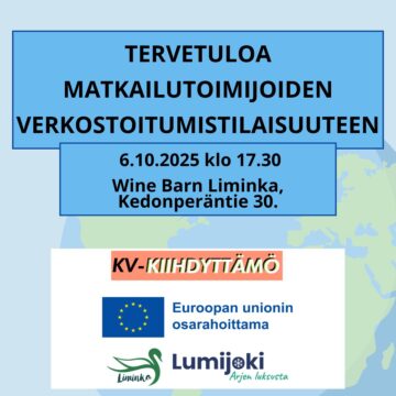 Tilaisuus on avoin ja tarkoitettu kaikille matkailun asioista innostuneille. Illan ohjelmassa on Visit Limingan ja KV-kiihdyttämö -hankkeen ajankohtaiset asiat ja aikaa on varattu yhteiselle vapaalle keskustelulle.