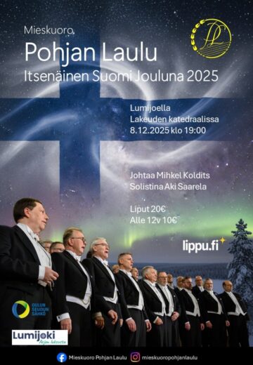 KE 3.12. ja KE 10.12.2025 klo 18.00 Pizzeria Meritassa Pääpalkintona joulukinkku ja pikkupalkintoina mm. jouluherkkuja. Kaikille avoimia tilaisuuksia. Tervetuloa! Tule mukaan käsityön kanssa tai ilman! Omien käsitöiden ilta noin kerran kuussa kerhohuoneella (Ylipääntie 11) klo 17-19. Ollaan yhdessä, jutellaan käsitöiden lomassa ja juodaan iltateet. Tervetuloa! Mieskuoro Pohjan Laulu Itsenäinen Suomi Jouluna 2025 Lumijoella Lakeuden katedraalissa 8.12.2025 klo 19.00. Johtaa Mihkel Koldits Solistina Aki Saarela Liput 20€, alle 12v. 10€ Liput Lippu.fi. KE 10.12.2025 klo 18.00 Pizzeria Meritassa Pääpalkintona joulukinkku ja pikkupalkintoina mm. jouluherkkuja. Kaikille avoimia tilaisuuksia. Tervetuloa! Klo 7.15-8.00 Lumijoen peruskoulun ruokalassa Järjestää vanhempainyhdistys Tule mukaan! Järjestää: Lumijoen seurakunta Lue lisää seurakunnan verkkosivulta.