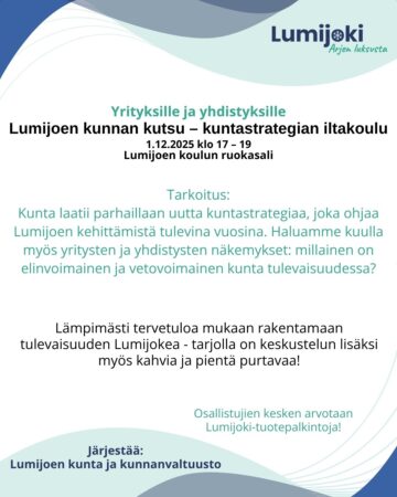 Yrityksille ja yhdistyksille; Lumijoen kunnan kutsu – kuntastrategian iltakoulu