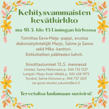 Kehitysvammaisten kevätkirkko LimingassaTervetuloa laulamaan suvivirsi!