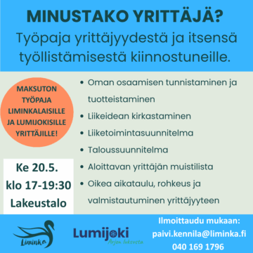 Lumijoki Marjo Koski-Vähälä p. 045 638 1973 tai marjo.koski-vahala(at)evl.fi