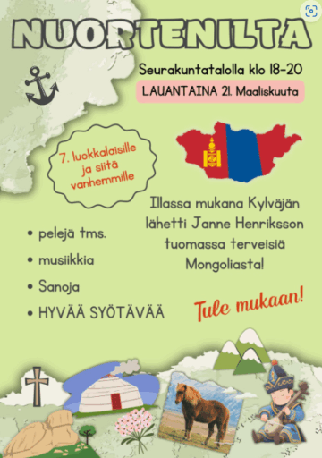 Nuortenillat ovat suunnattu 7.luokkalaisista ylöspäin.