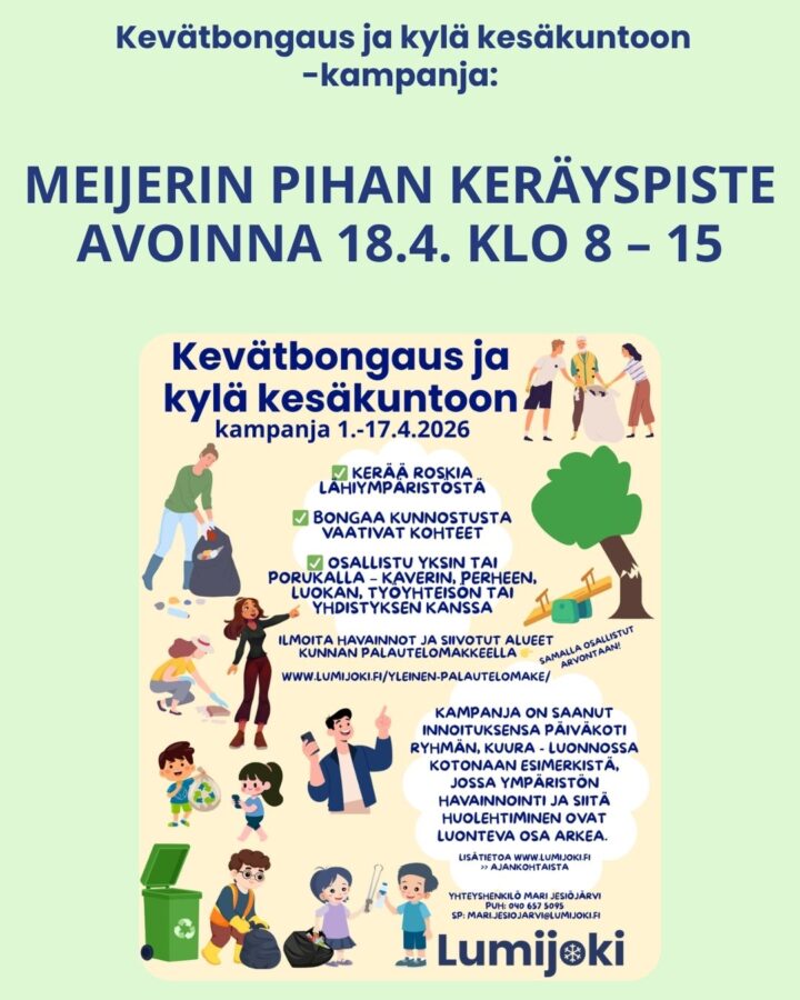 Kevätbongaus ja kylä kesäkuntoon kampanja: Meijerin pihan keräyspiste avoinna 18.4.