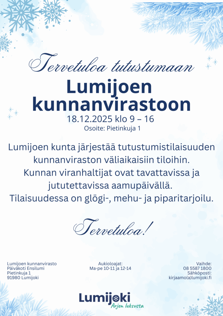 Lumijoen kunta järjestää tutustumistilaisuuden kunnanviraston väliaikaisiin tiloihin.